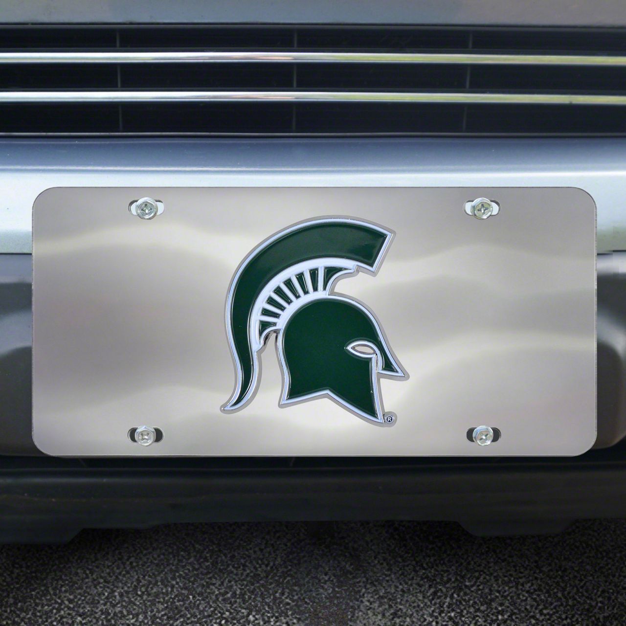 License Plate with Michigan State University Logo; Stainless Steel (Universal; Some Adaptation May Be Required)