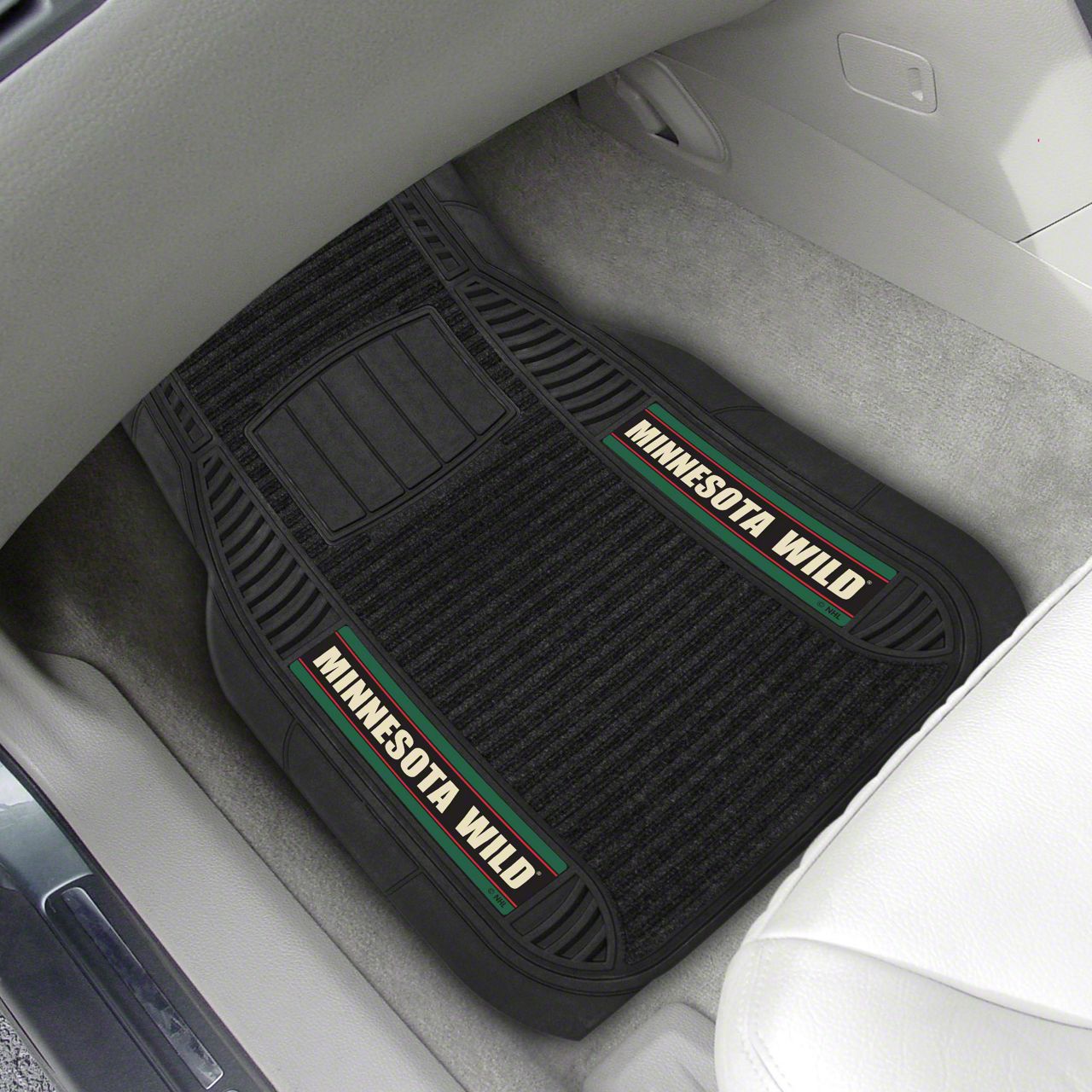 Description. Front Car Mats; 2-Pc Deluxe Car Mat Set; Nhl; Minnesota Wild; 21"X27"