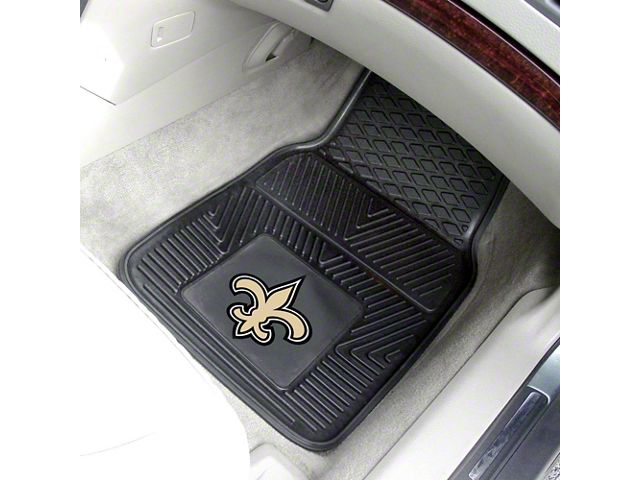 Fan Pride Floor Mats. The Vinyl Front Floor Mats with New Orleans Saints Logo are perfect for protecting your vehicle’s flooring while showing off your team pride. These mats are designed to safeguard your car's interior from dirt and spills, making them an essential accessory for fans who want to add a custom touch to their vehicle.