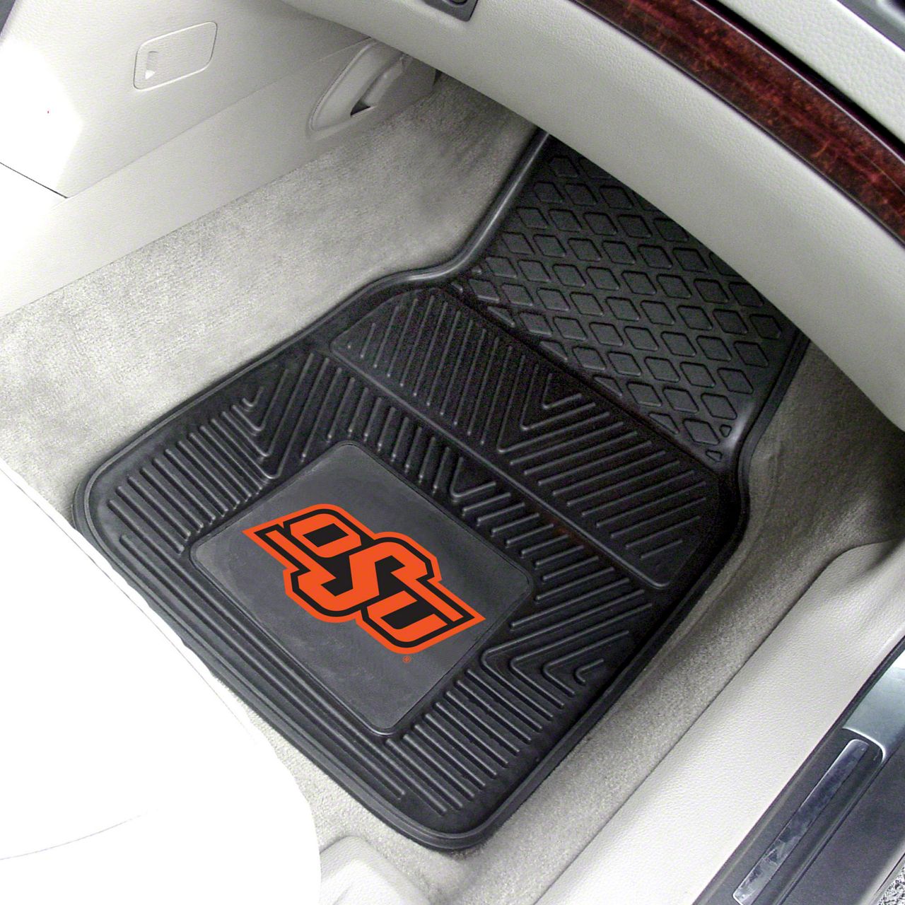 Description. Front Car Mats; 2-Pc Vinyl Car Mat Set; Oklahoma State University; 17"X27"