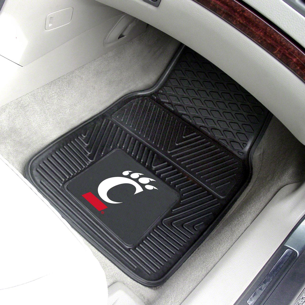 Description. Front Car Mats; 2-Pc Vinyl Car Mat Set; University Of Cincinnati; 17"X27"