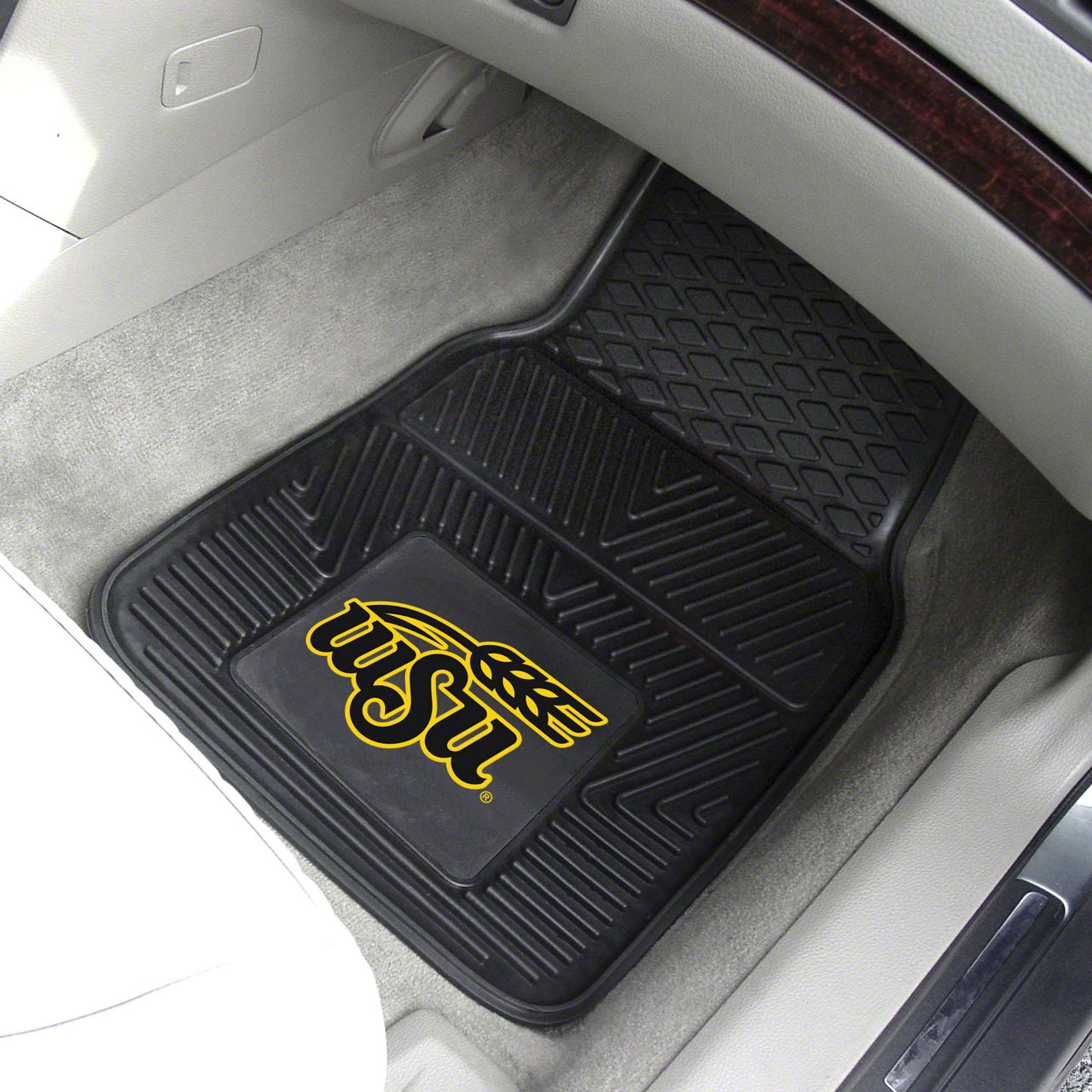 Description. Front Car Mats; 2-Pc Vinyl Car Mat Set; Wichita State University; 17"X27"