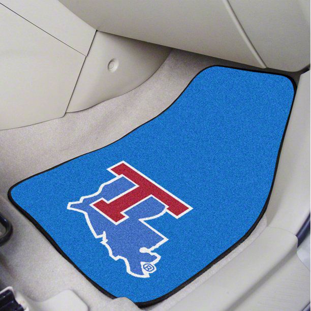 Description. Front Car Mats; 2-Pc Carpet Car Mat Set; Louisiana Tech University; 17"X27"
