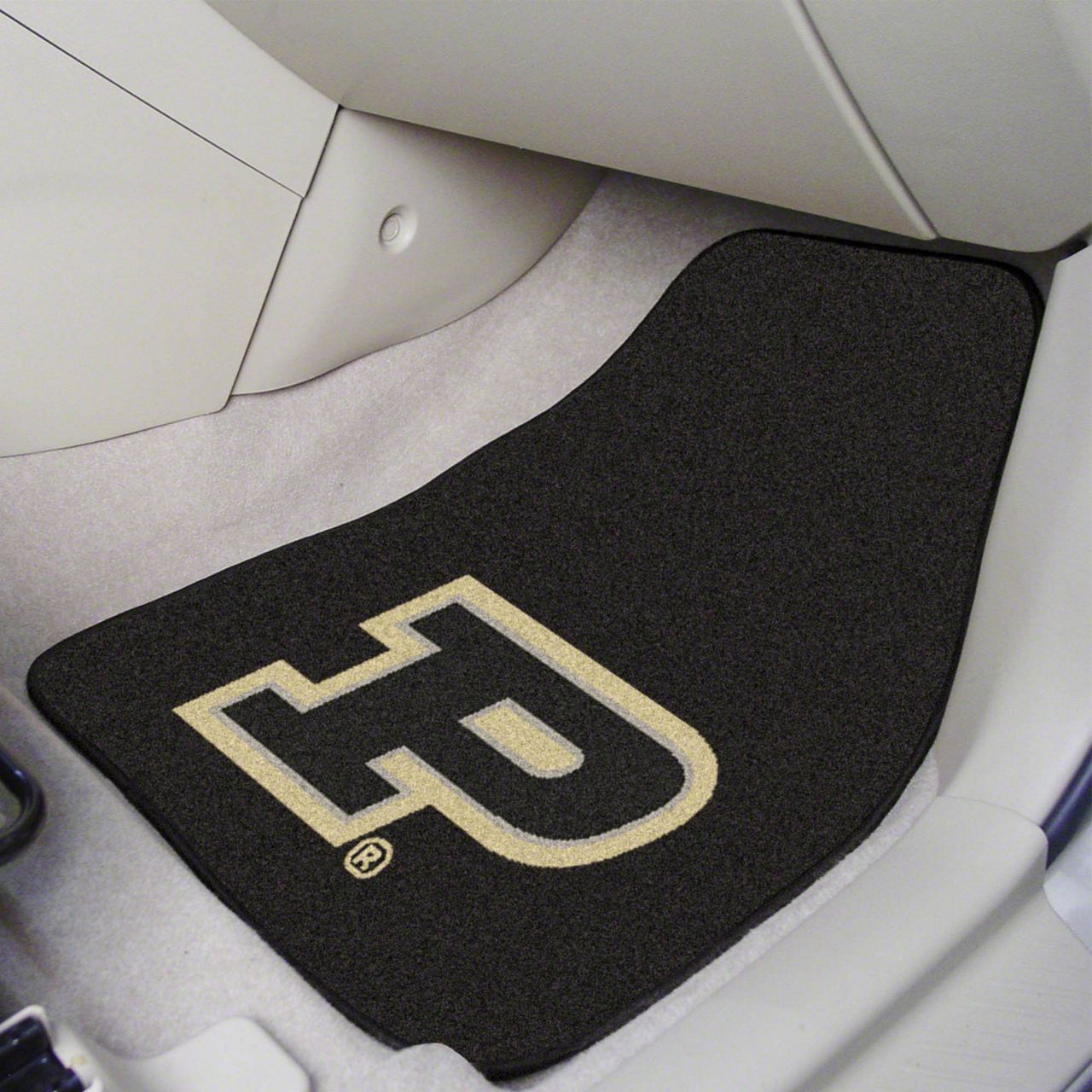 Description. Front Car Mats; 2-Pc Carpet Car Mat Set; Purdue University; 17"X27"