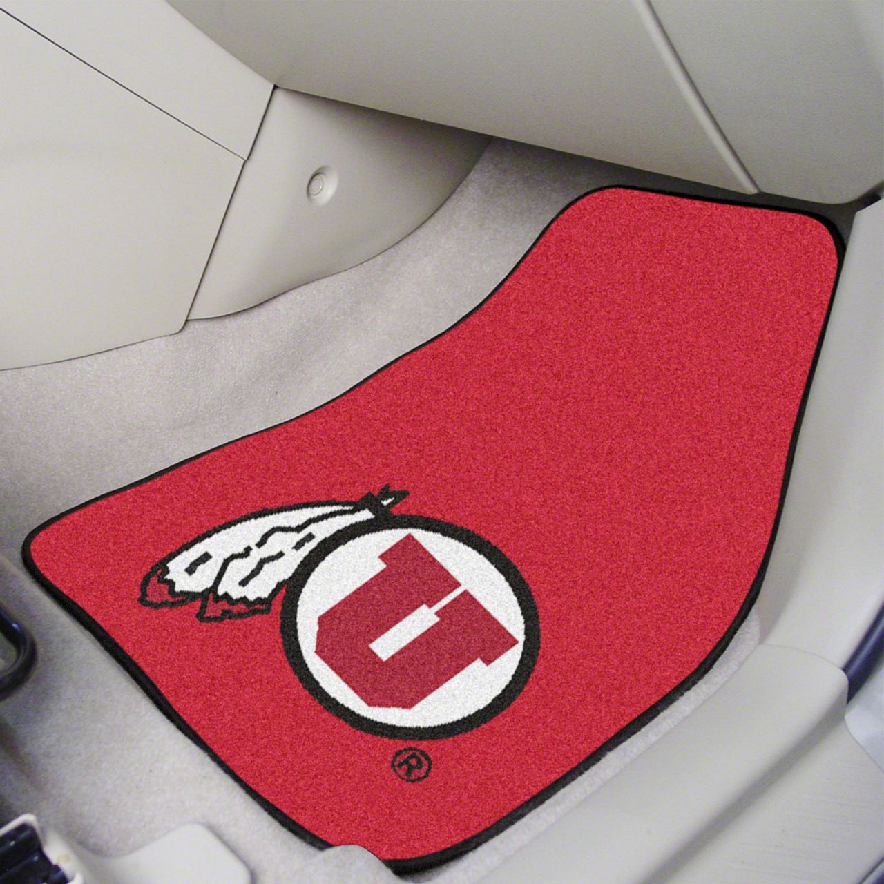 Description. Front Car Mats; 2-Pc Carpet Car Mat Set; University Of Utah; 17"X27"