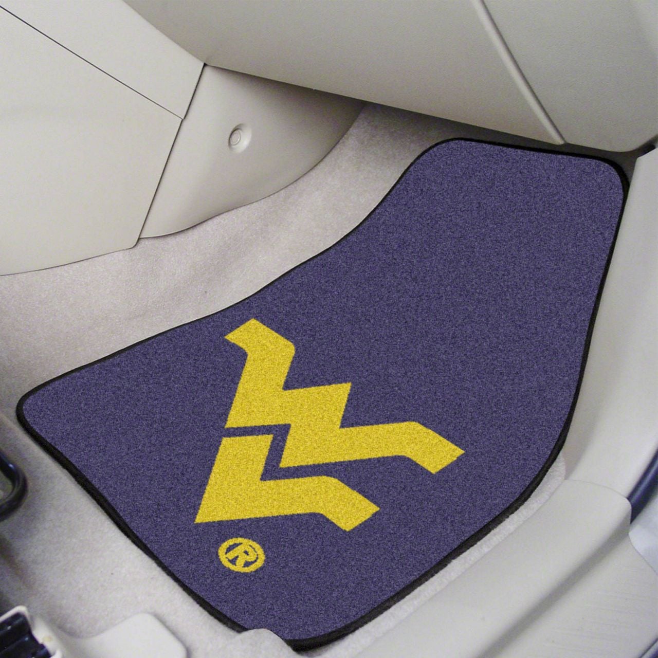 Description. Front Car Mats; 2-Pc Carpet Car Mat Set; West Virginia University; 17"X27"