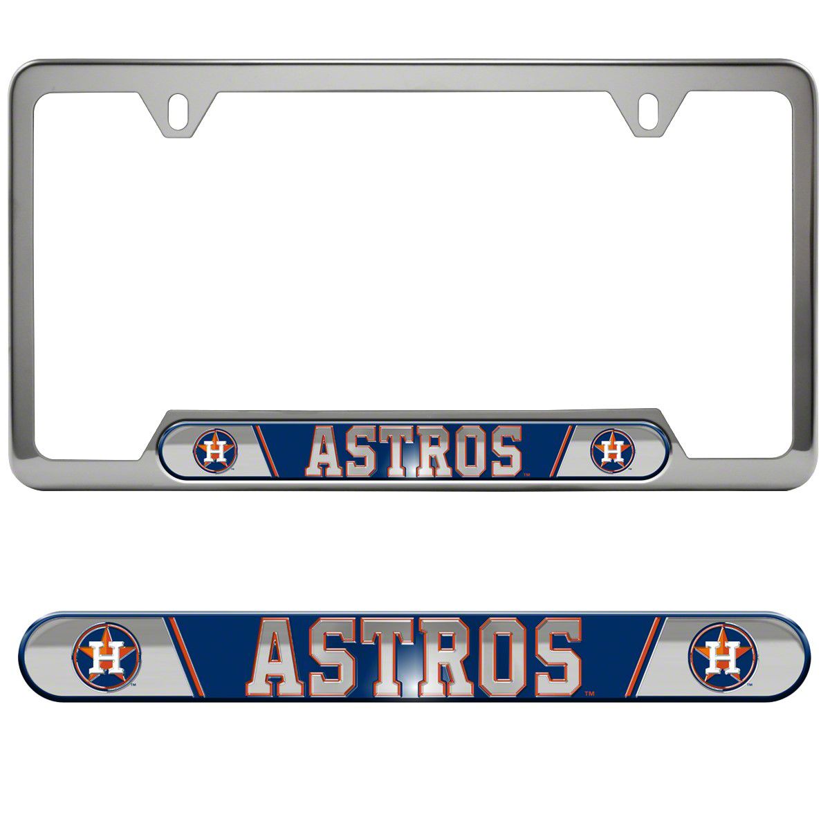 Show Your Team Pride. The Embossed License Plate Frame with Houston Astros Logo is the perfect way to display your loyalty while adding a custom aesthetic to your vehicle. Designed to be both durable and weather-resistant, this frame will keep your license plate secure and stylish in any conditions.