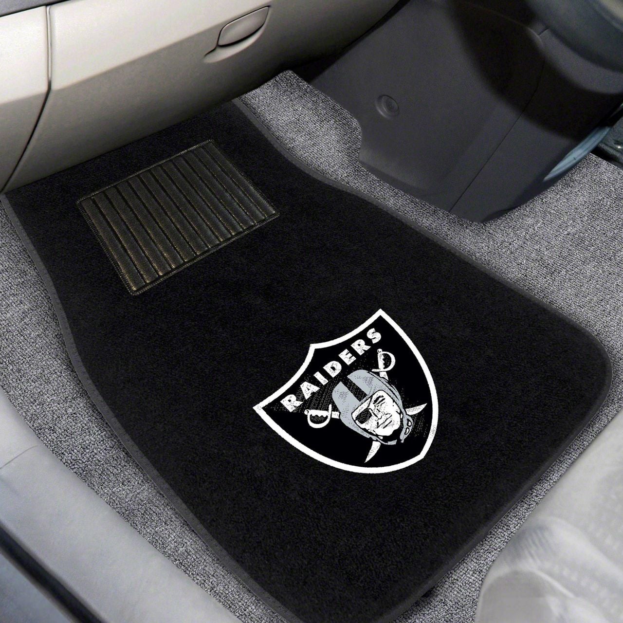 Description. Front Car Mats; 2-Pc Embroidered Car Mat Set; Nfl; Las Vegas Raiders; 17"X25.5"