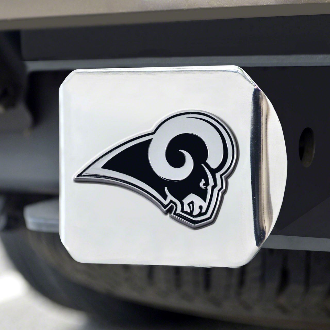 Description. Automotive Accessory; Hitch Cover; Chrome; Nfl; Los Angeles Rams ; 3.4"X4"