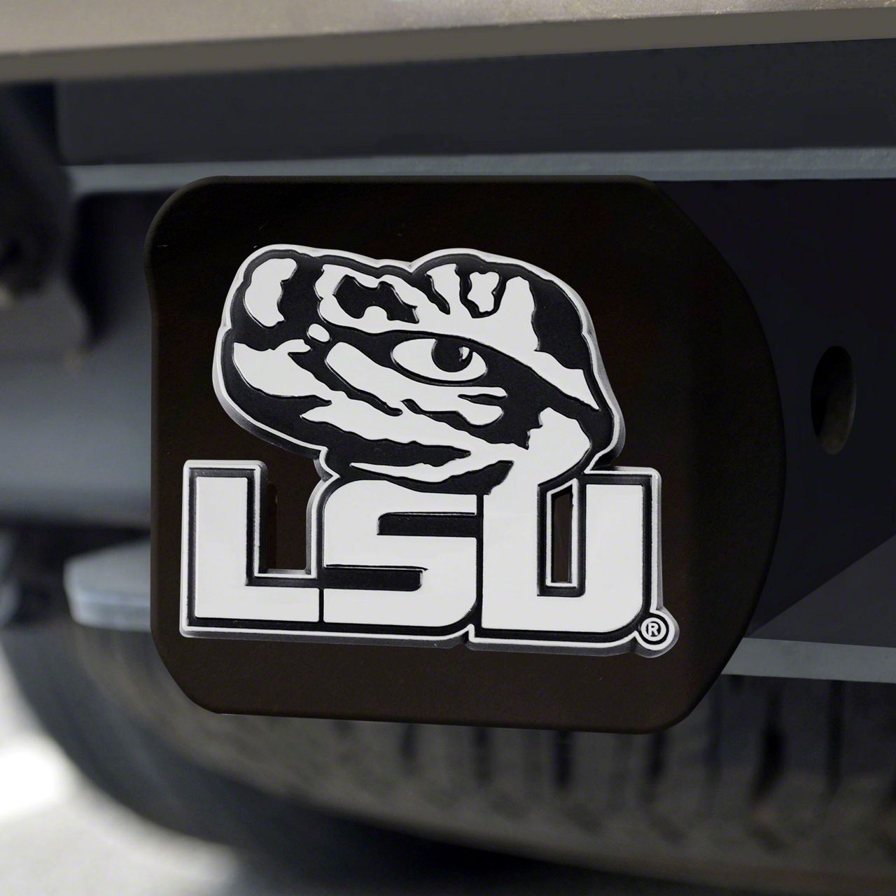 Description. Hitch Cover; Hitch Cover; Black; Louisiana State University; 3.4"X4"