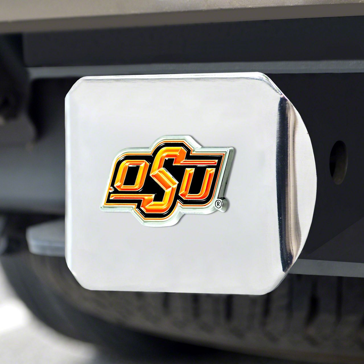 Description. Hitch Cover; Color Hitch Cover; Chrome; Oklahoma State University; 3.4"X4"