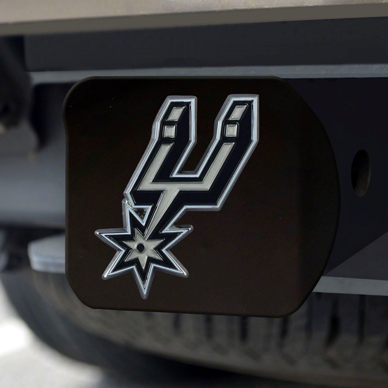 Description. Hitch Cover; Color Hitch Cover; Black; Nba; San Antonio Spurs; 3.4"X4"