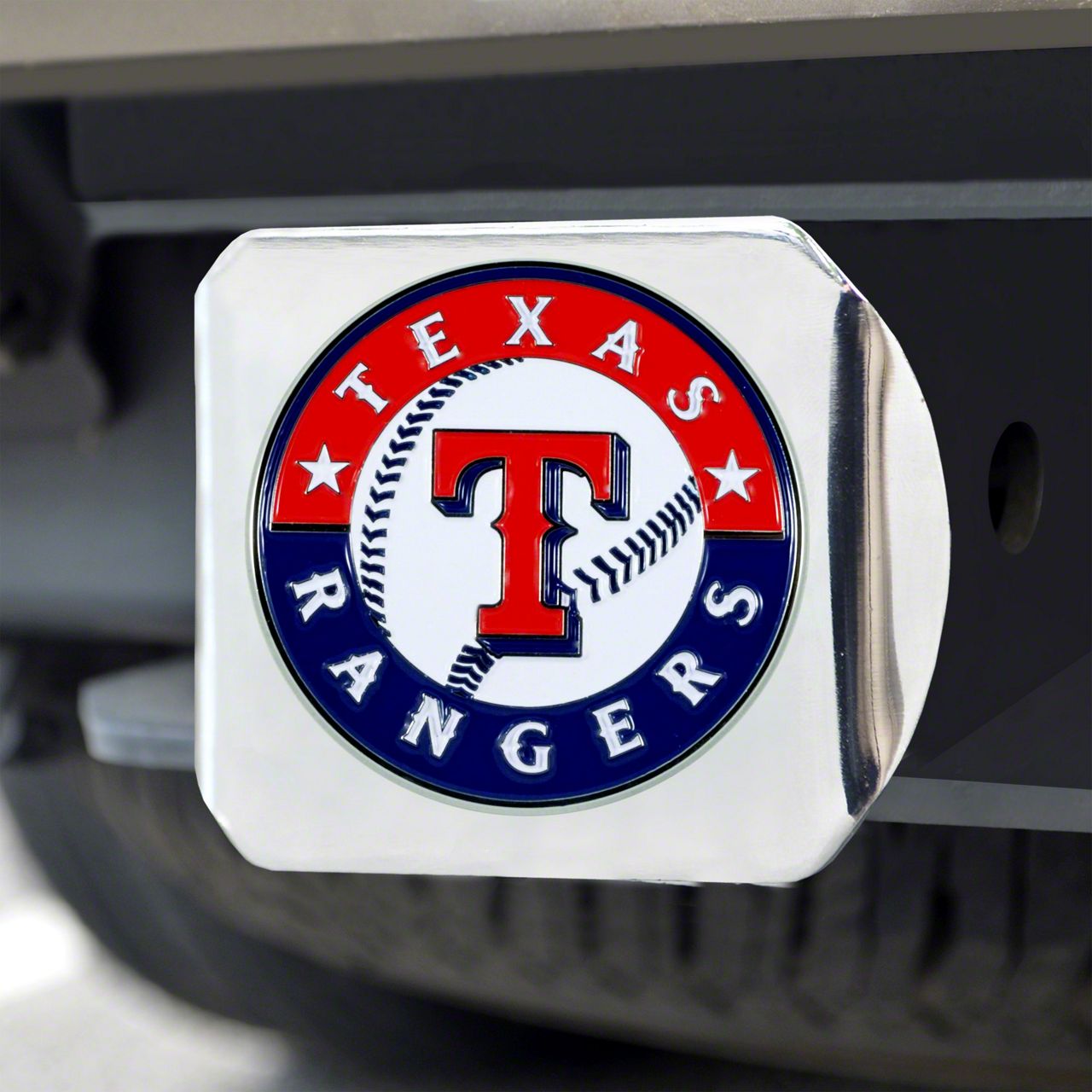 Description. Hitch Cover; Color Hitch Cover; Chrome; Mlb; Texas Rangers; 3.4"X4"