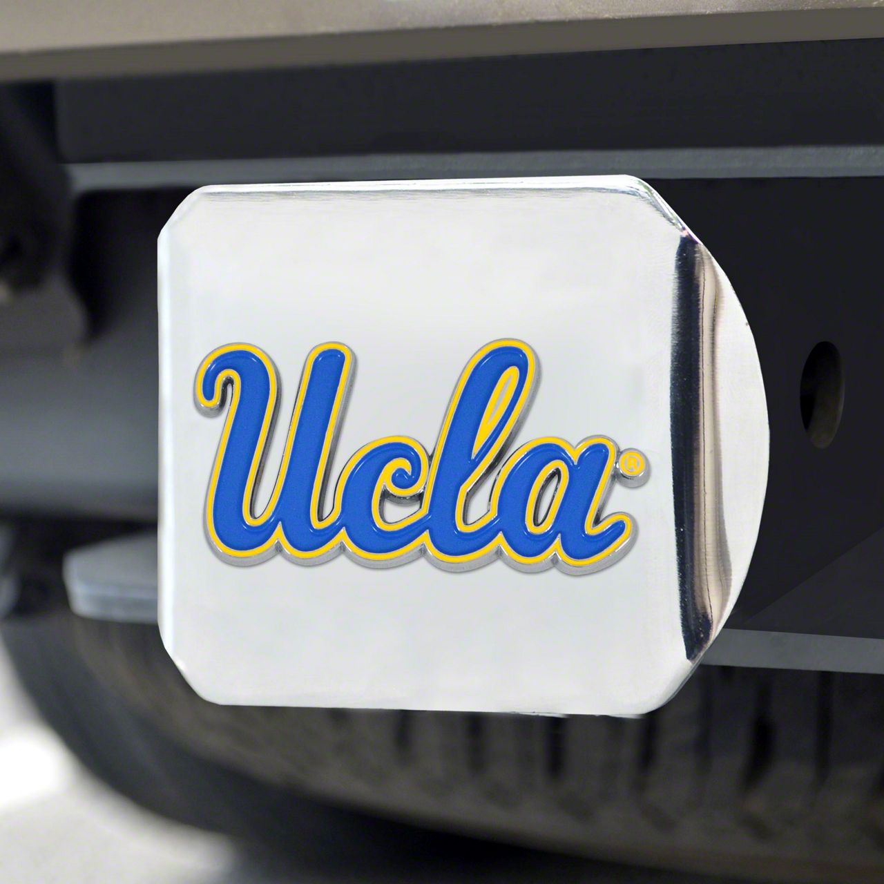 Description. Hitch Cover; Color Hitch Cover; Chrome; University Of California; Los Angeles (Ucla); 3.4"X4"