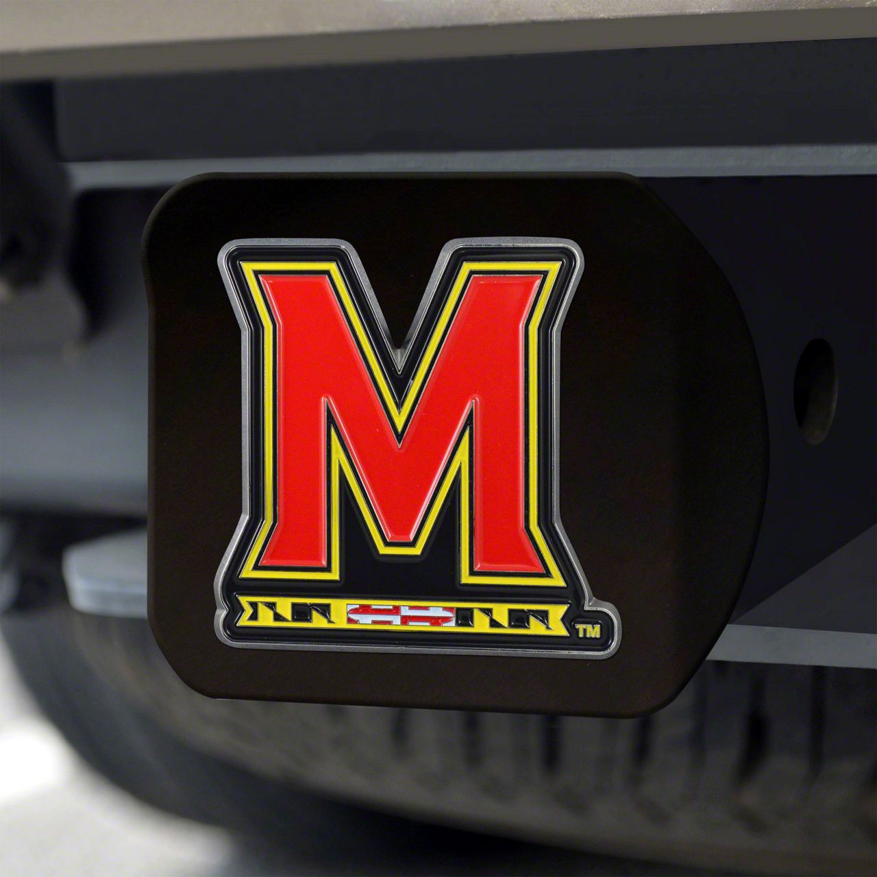 Description. Hitch Cover; Color Hitch Cover; Black; University Of Maryland; 3.4"X4"