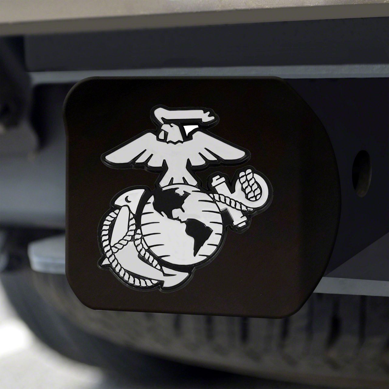 Application. This Hitch Cover with U.S. Marines Logo in Black fits universally and requires minimal adjustments.