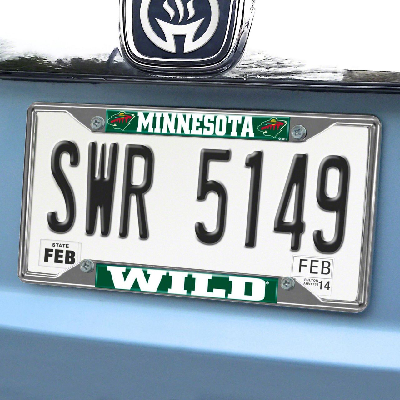 License Plate Frame with Minnesota Wild Logo; Chrome (Universal; Some Adaptation May Be Required)