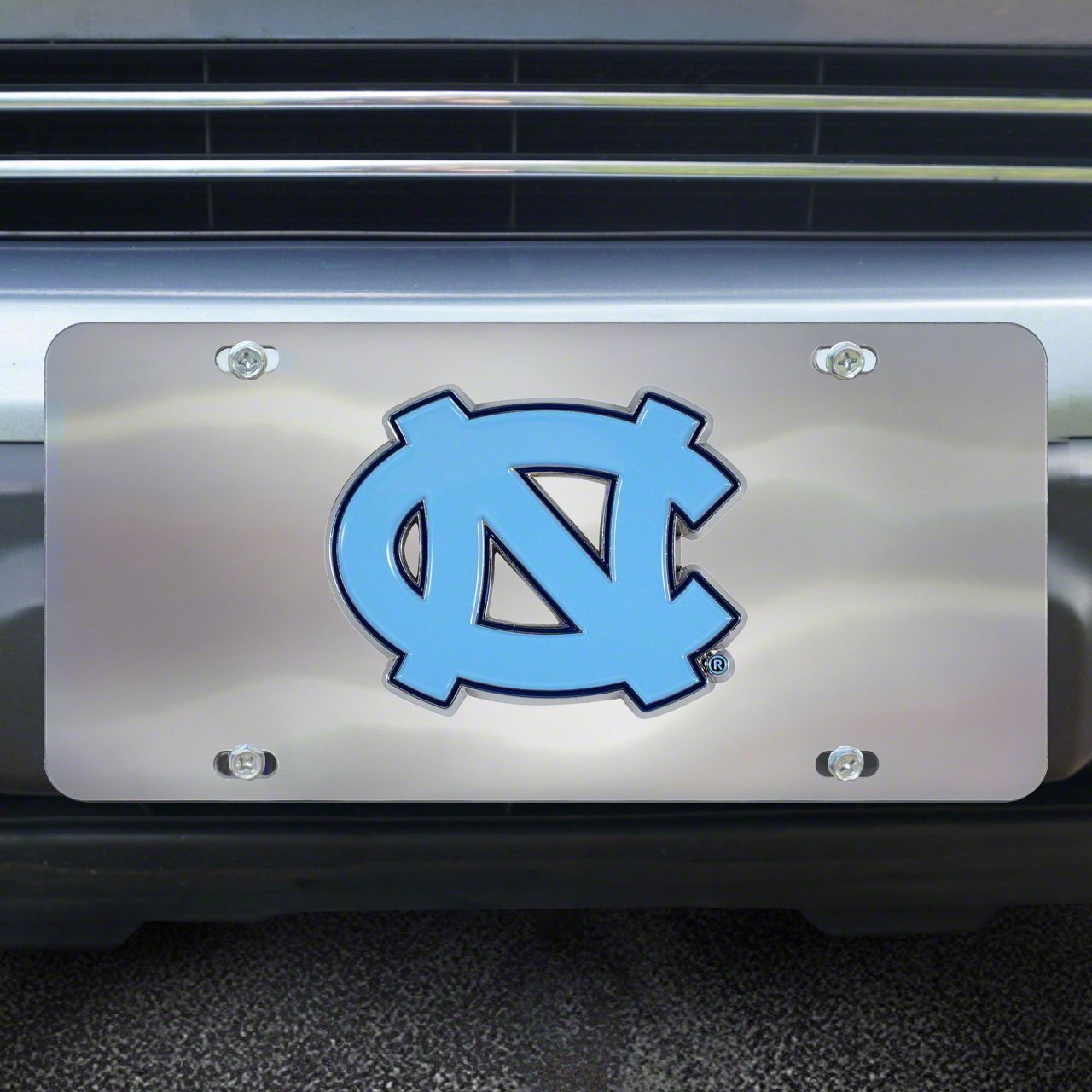 License Plate with University of North Carolina Logo; Stainless Steel (Universal; Some Adaptation May Be Required)