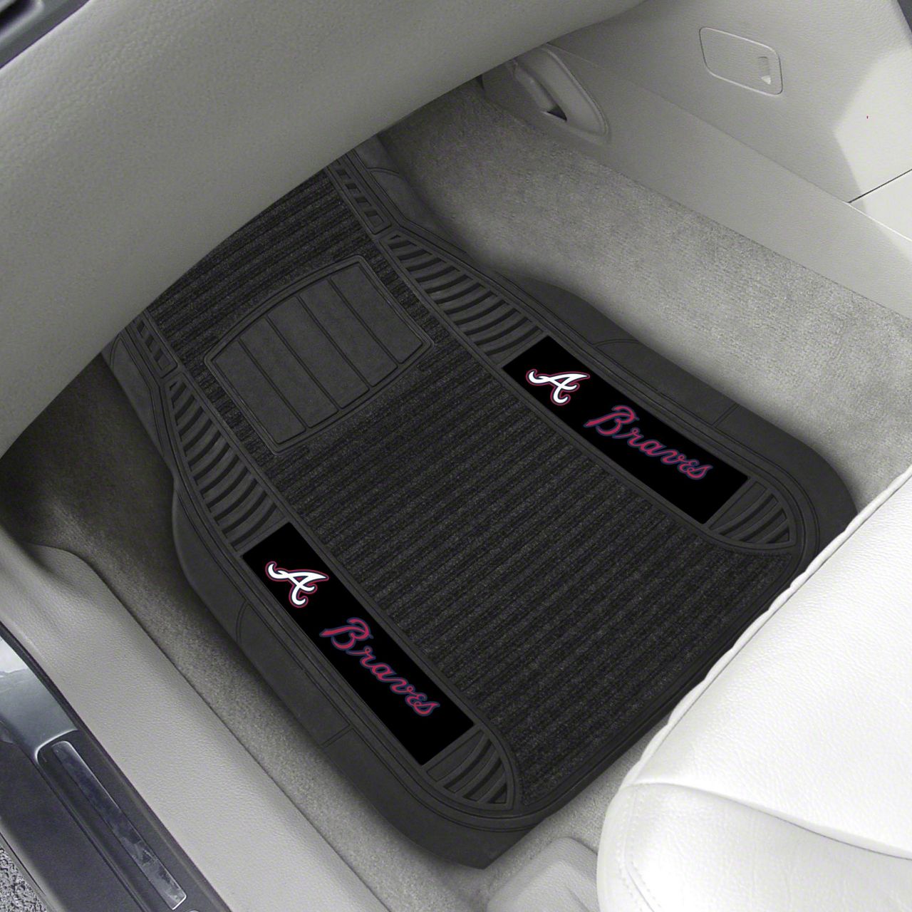 Application. This Molded Front Floor Mats with Atlanta Braves Logo fits universally and requires minimal adjustments.