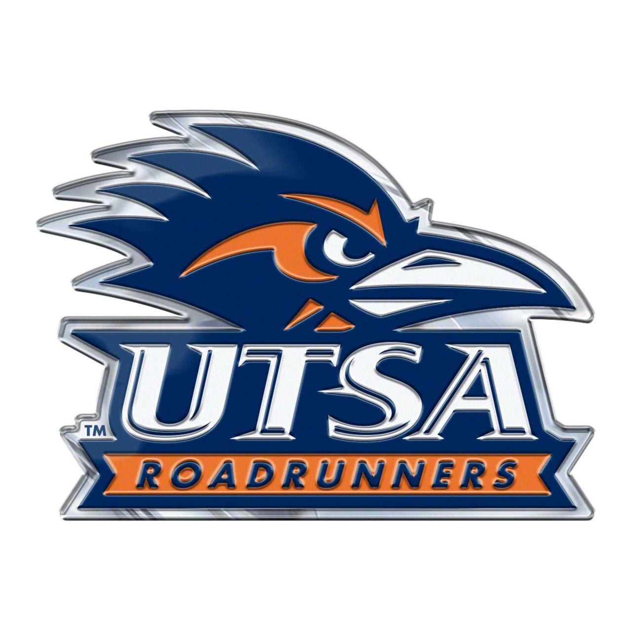 University of Texas-San Antonio Embossed Emblem; Blue and Orange (Universal; Some Adaptation May Be Required)