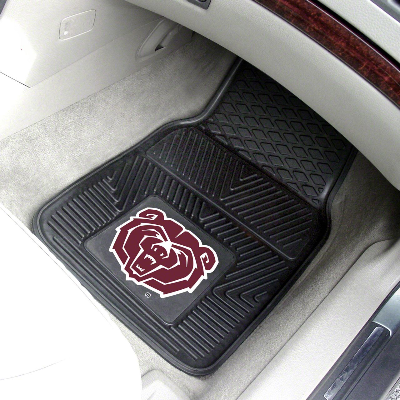 Description. Front Car Mats; 2-Pc Vinyl Car Mat Set; Missouri State University; 17"X27"