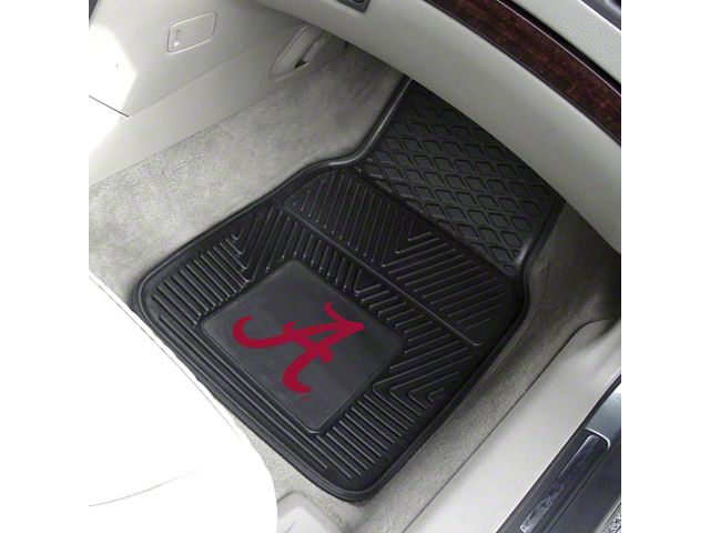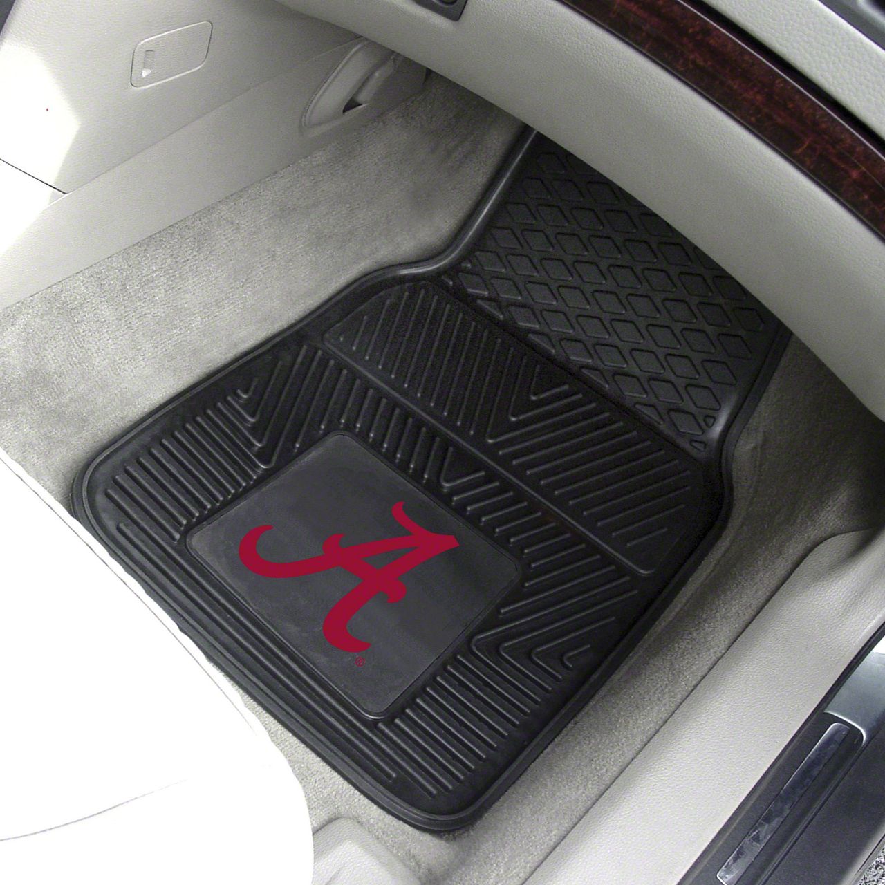Construction and Appearance. Crafted from high-quality vinyl, these floor mats are built to withstand daily wear and tear, ensuring long-lasting protection for your vehicle's interior. The matte black finish complements most interior color schemes, while the University of Alabama logo adds a stylish and personalized touch. Sized at 17 x 27 inches, these mats provide ample coverage for the front footwells of your vehicle.
