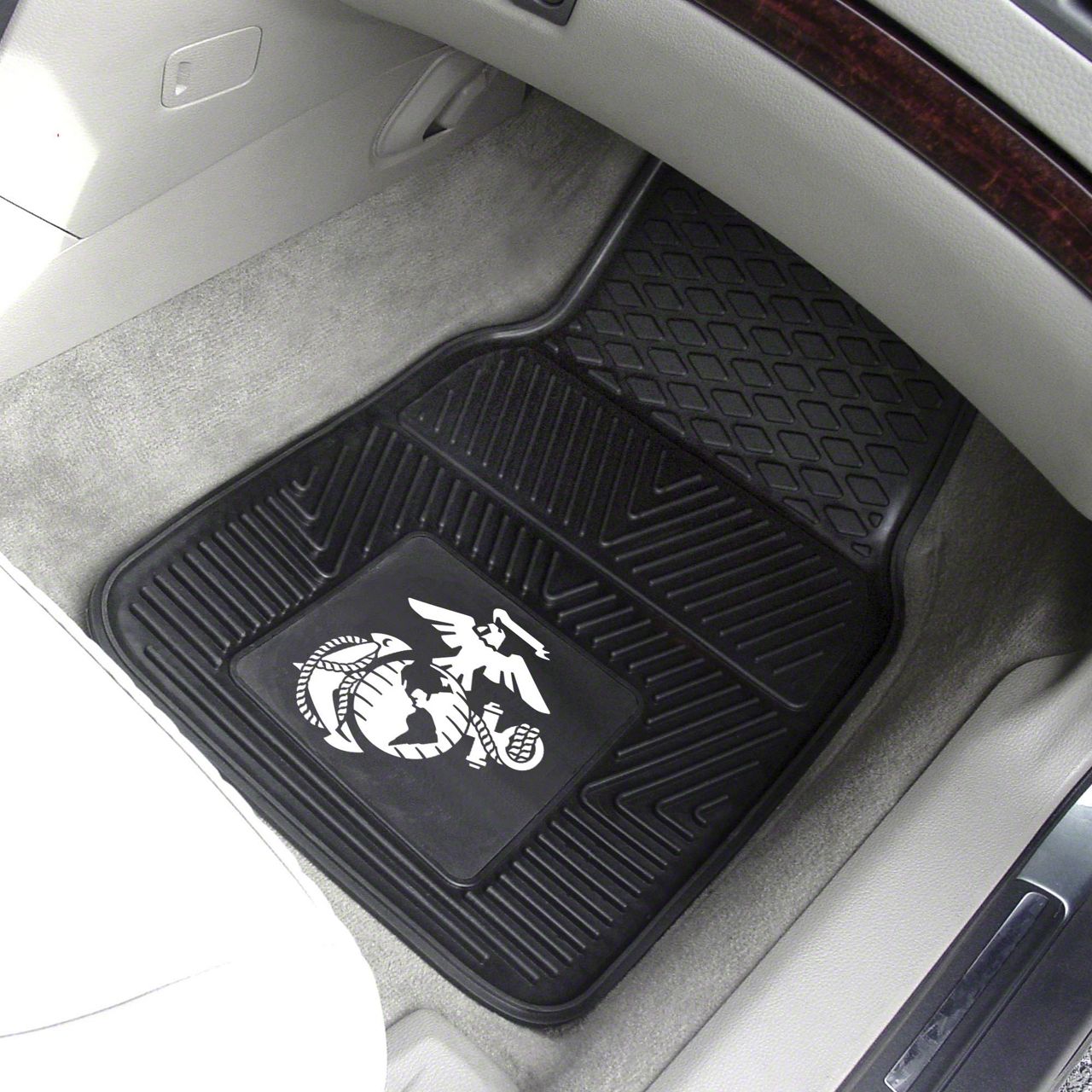 Description. Front Car Mats; 2-Pc Vinyl Car Mat Set; U.S. Marines; 17"X27"