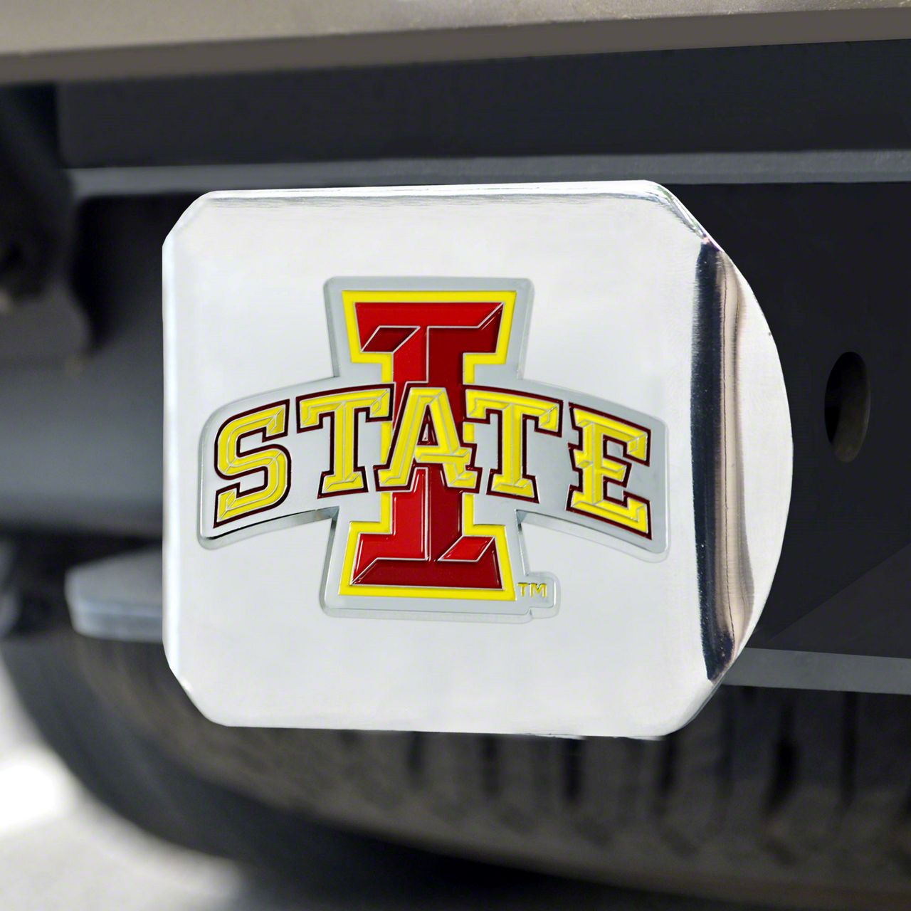 Description. Hitch Cover; Color Hitch Cover; Chrome; Iowa State University; 3.4"X4"