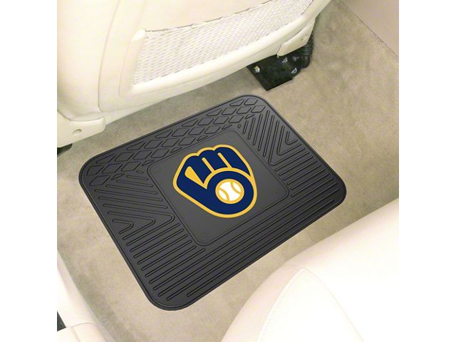 Protective Team Spirit. The Utility Mat with Milwaukee Brewers Logo offers a functional and stylish way to protect your vehicle's rear floor area. Featuring the official MLB Milwaukee Brewers logo, this mat adds a touch of fan pride while guarding against dirt, spills, and wear. It's a perfect upgrade for fans who value both utility and team loyalty.