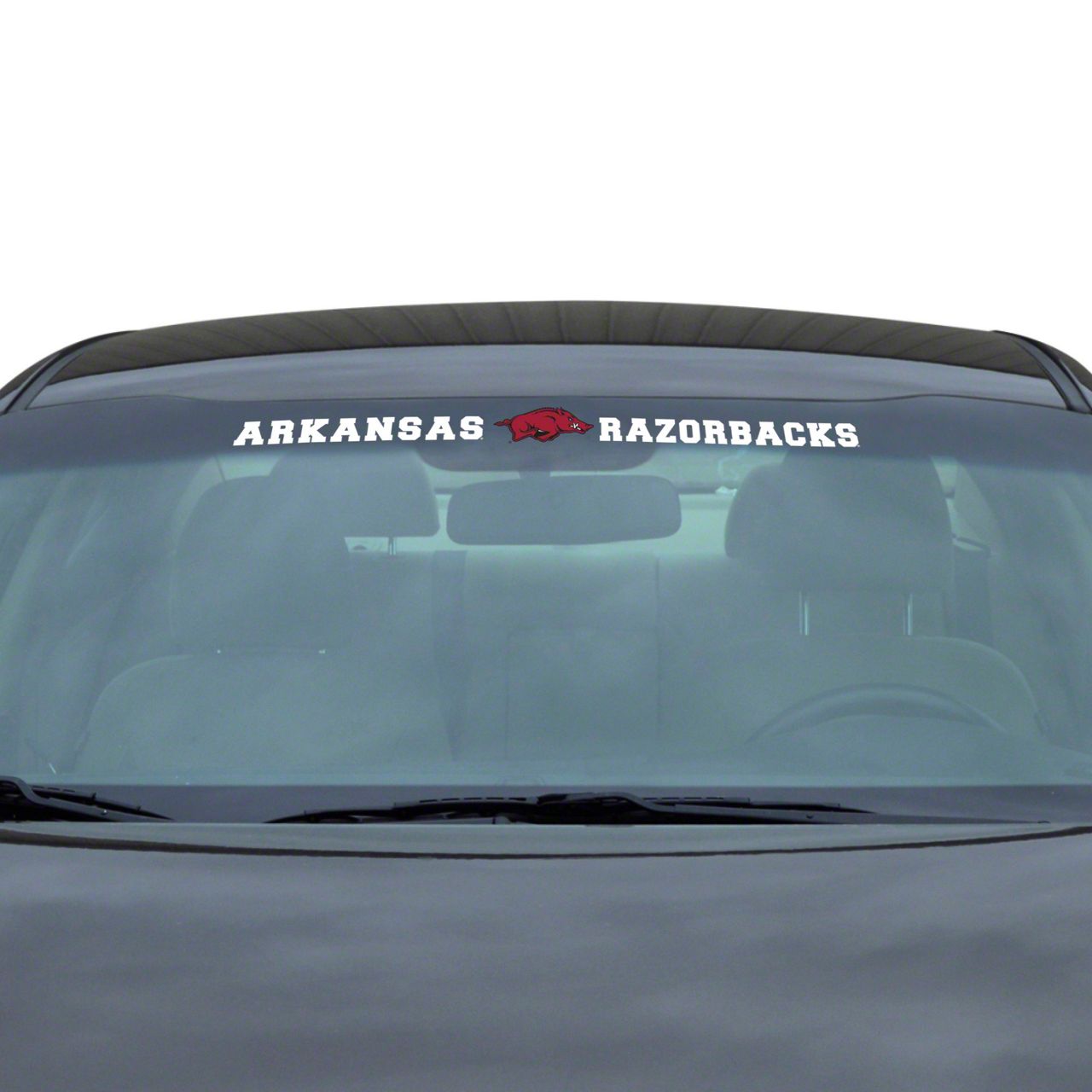 White Colored Vinyl Showcase. Showcase your University of Arkansas pride with this premium Windshield Decal, meticulously produced from high-quality vinyl material. Featuring an officially licensed University of Arkansas logo, this decal is finished off with a white colored wordmark and full-color team logo. Designed for universal applications, the precision-cut decal easily fits on curved windshields, making it the perfect accessory for displaying your Razorback spirit on the go.