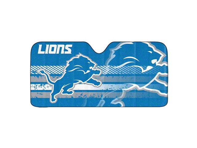 Application. This Windshield Sun Shade with Detroit Lions Logo (Blue) is engineered for universal applications, fitting a wide range of vehicles.