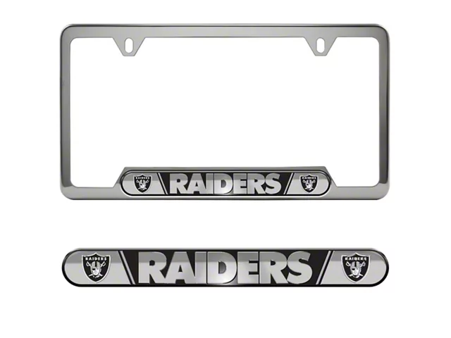 Show Some Raiders Support. With this Embossed License Plate Frame with Las Vegas Raiders Logo in Black, there's no mistaking which professional football team you back. Aside from professing your loyalty to the Raiders, this plate frame also showcases your Tundra's license plate and gives it a sleek, eye-catching look.