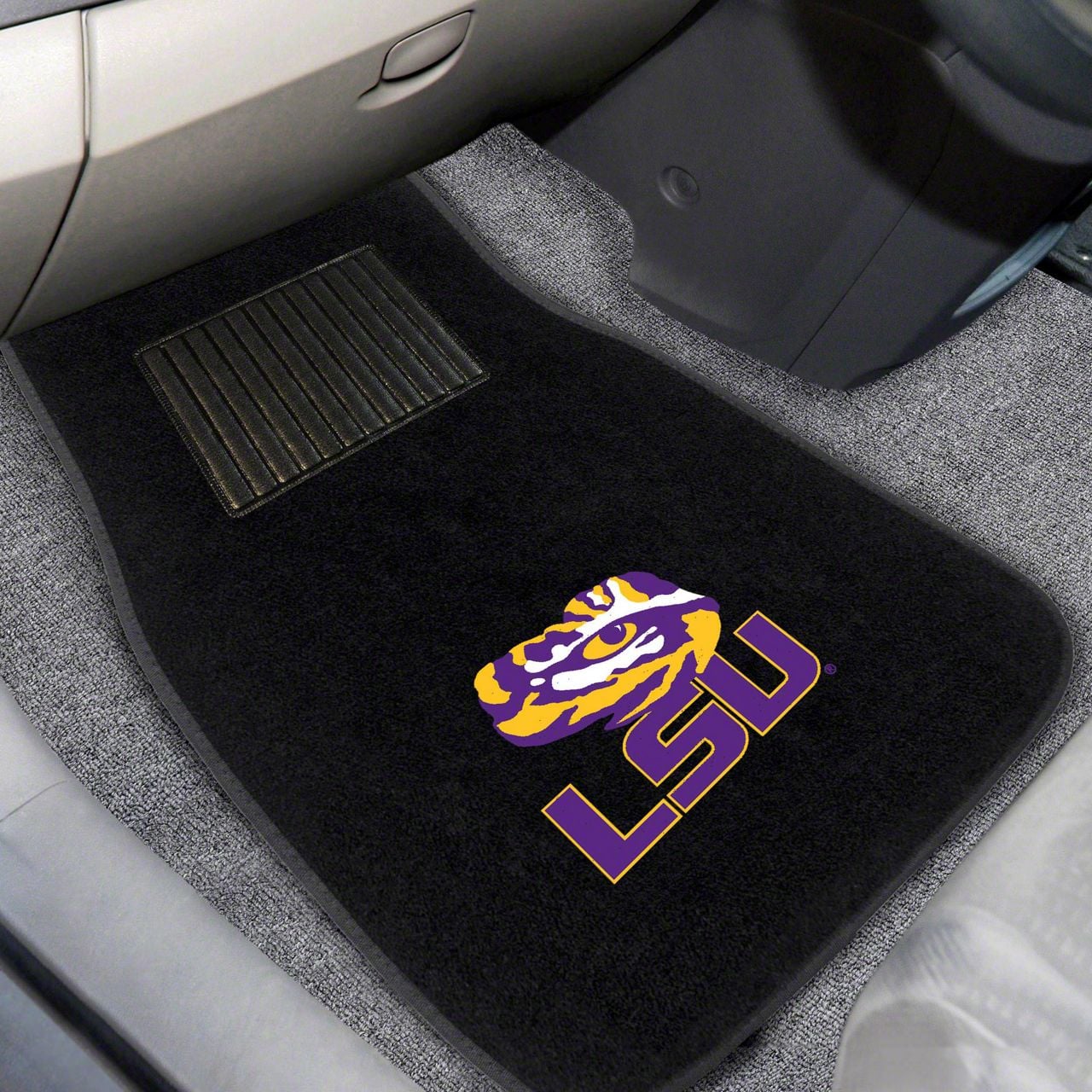 Description. Front Car Mats; 2-Pc Embroidered Car Mat Set; Louisiana State University; 17"X25.5"