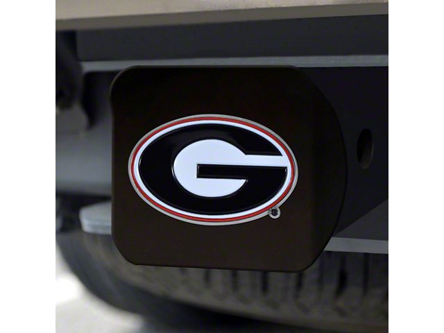 Construction and Appearance. This Hitch Cover with the University of Georgia Logo was manufactured from metal with a black finish and the traditional University of Georgia "G." The 3D molded design looks sensational.