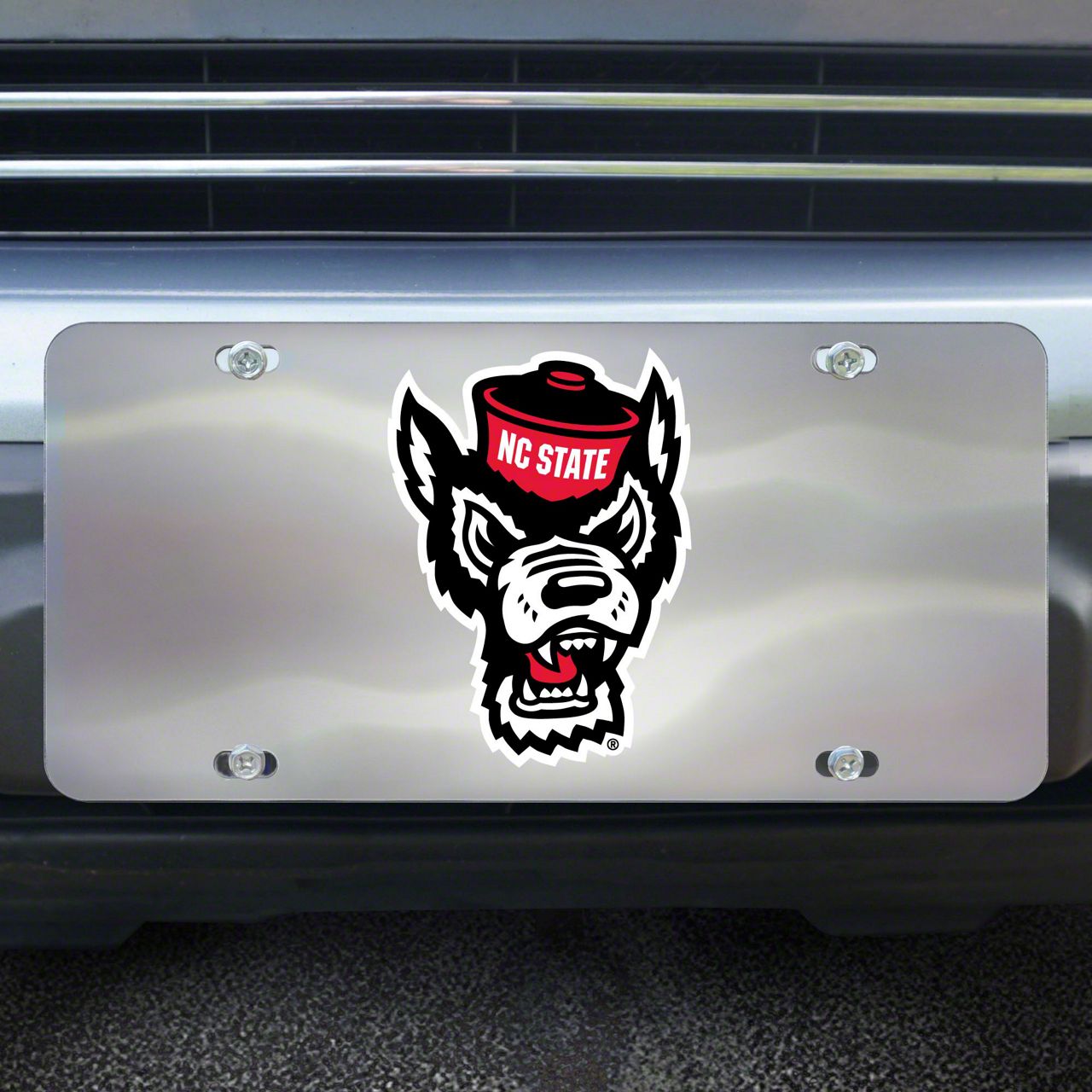 License Plate with NC State University Logo; Stainless Steel (Universal; Some Adaptation May Be Required)