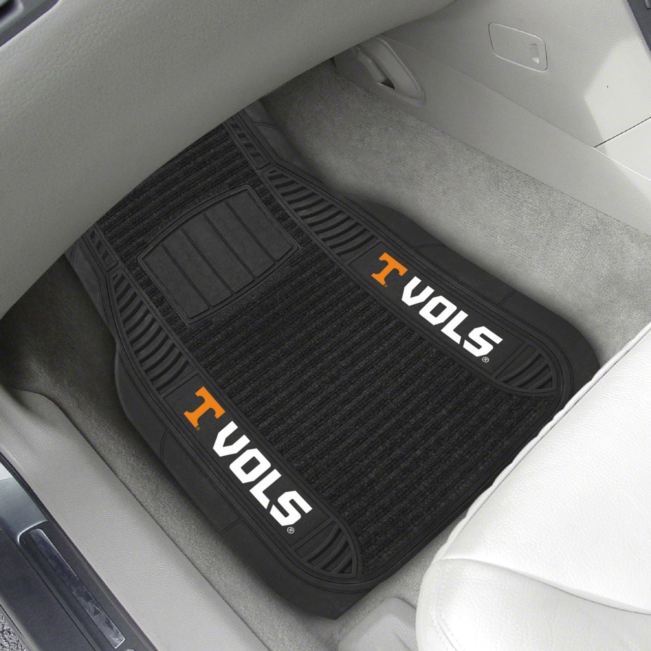 Description. Front Car Mats; 2-Pc Deluxe Car Mat Set; University Of Tennessee; 21"X27"