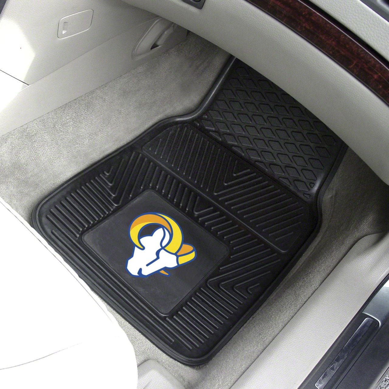 Description. Front Car Mats; 2-Pc Vinyl Car Mat Set; Nfl; Los Angeles Rams; 17"X27"