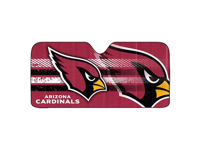 Application. This Windshield Sun Shade fits universal fit vehicles. It's the ideal accessory for any Arizona Cardinals fan looking to protect their vehicle’s interior while showcasing their team loyalty. In addition to keeping your ride cooler, it helps preserve your dashboard and upholstery from fading and sun damage.