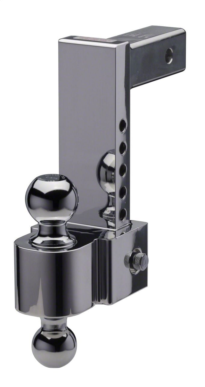Description. Trailer Hitch Ball Mount; 8 in. Drop Flash E Series Adjustable Ball Mount; 8 in. Drop; 9 in. Rise; Chrome 2 and 2 5/8 in. Ball;;