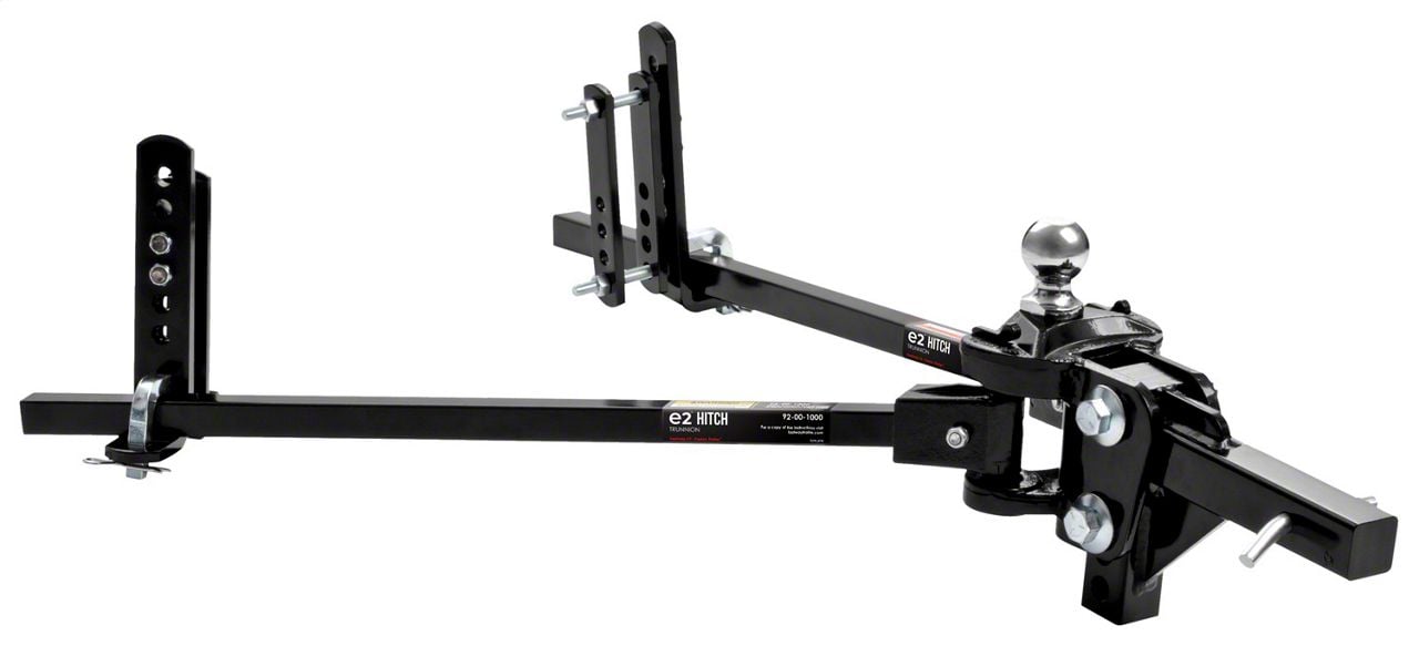 Sturdy Construction. FastWay Tacoma e2 10K Trunnion Weight Distributing Receiver Hitch with Built-In Sway Control is made from heavy-duty steel for an impressive weight capacity and outstanding durability. The maximum supported tongue weight is 1,000 Pounds, and the maximum gross weight is 10,000 Pounds. A smooth black finish ensures a clean appearance and looks great with any vehicle.