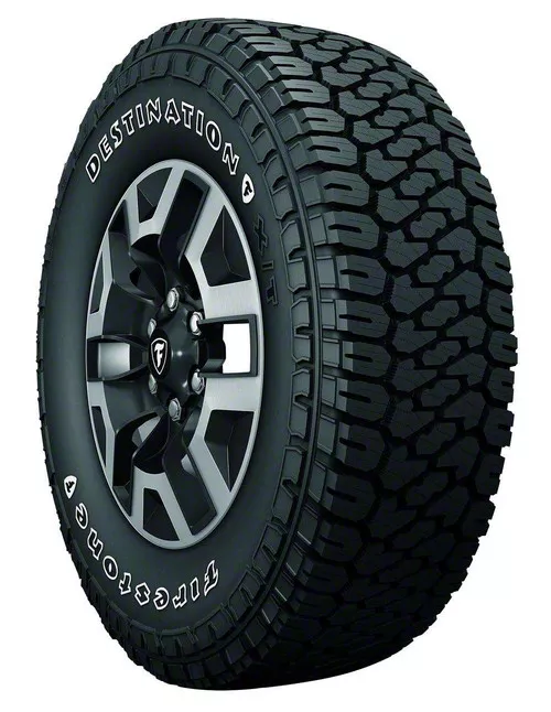 Maximum Reliability. The Firestone Destination X/T Tire is designed to deliver a superior blend of comfort, durability, and performance, no matter the conditions. Whether you're commuting to work or embarking on an off-road adventure, it has you covered. The Destination X/T Tire features an aggressive tread pattern that ensures excellent traction on both dry and wet surfaces. Its deep, wide grooves effectively channel water away from the tire's contact patch, reducing the risk of hydroplaning and enhancing safety in wet conditions. Whether it's snow, rain, or sun, you can count on consistent performance from these robust tires.