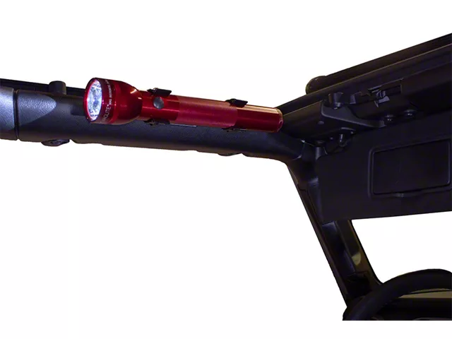 Easier Flashlight Access. To prevent your flashlight from rolling anywhere inside your vehicle, install this Fishbone Offroad Front Roll Bar Flashlight Mount. This flashlight mount makes it easier for you to access your flashlight by placing it on your sport bar that's above the driver’s seat. Its plastic clips can fit any D-cell size flashlights and are designed to secure your flashlight in place. Please note that a flashlight is not included in this kit.