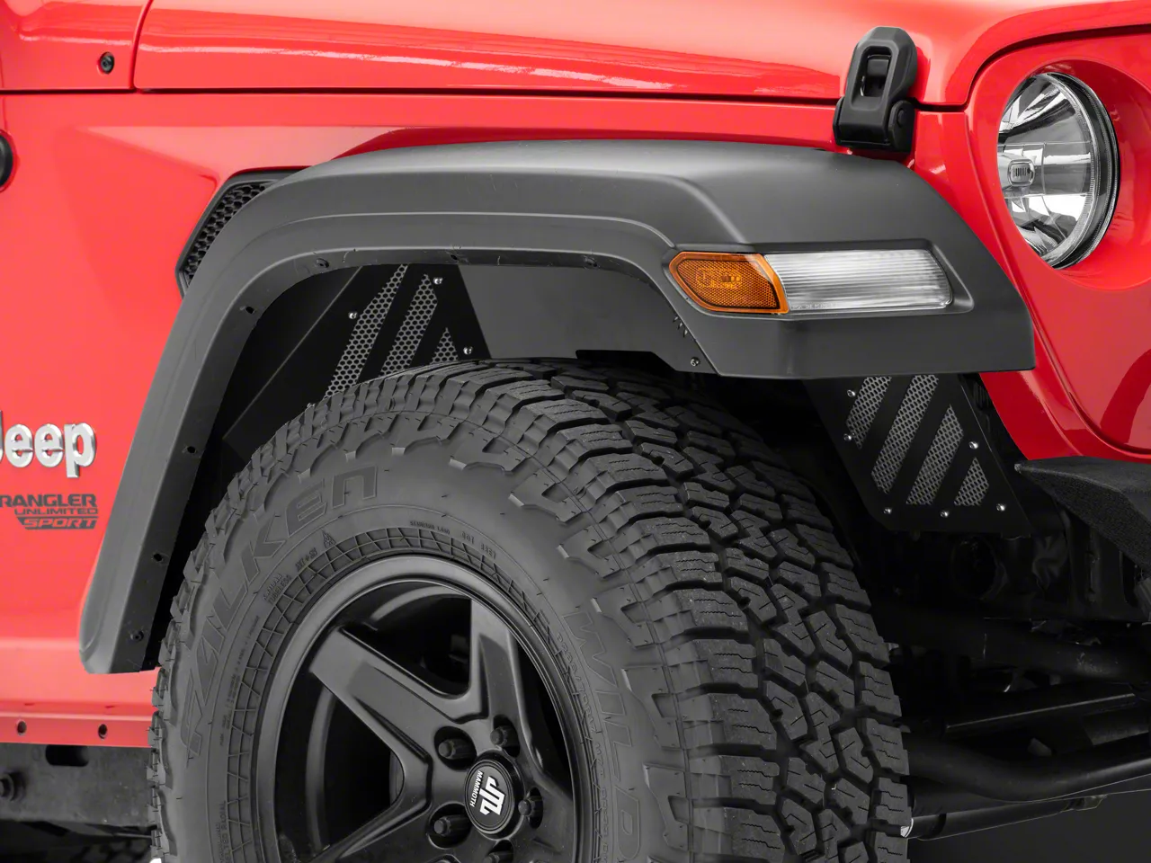 Application. These Front Black Fishbone Offroad Aluminum Inner Fenders are specially designed for all the 2018-2026 Jeep Wrangler JL models.