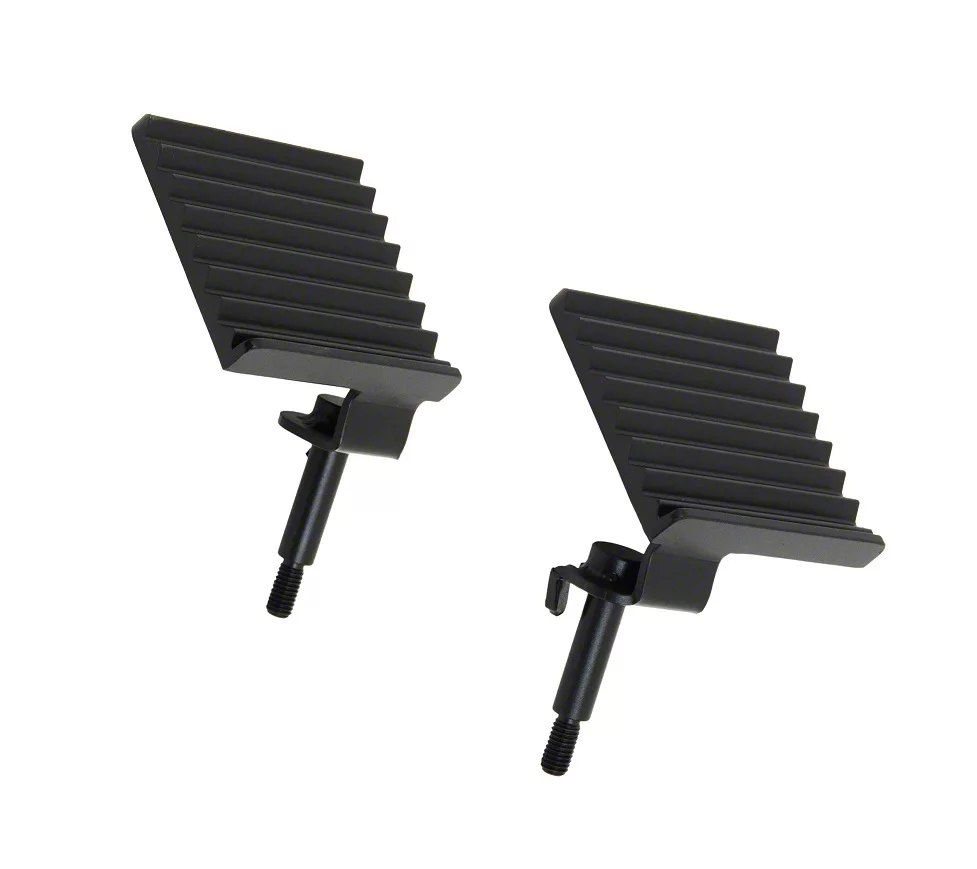 Long-Lasting Manufacture. These foot pegs are made of steel and are finished with a gloss black powder coat to ensure survival through the roughest weather or driving conditions. Plus, each peg includes a rubber stop to prevent paint damage.