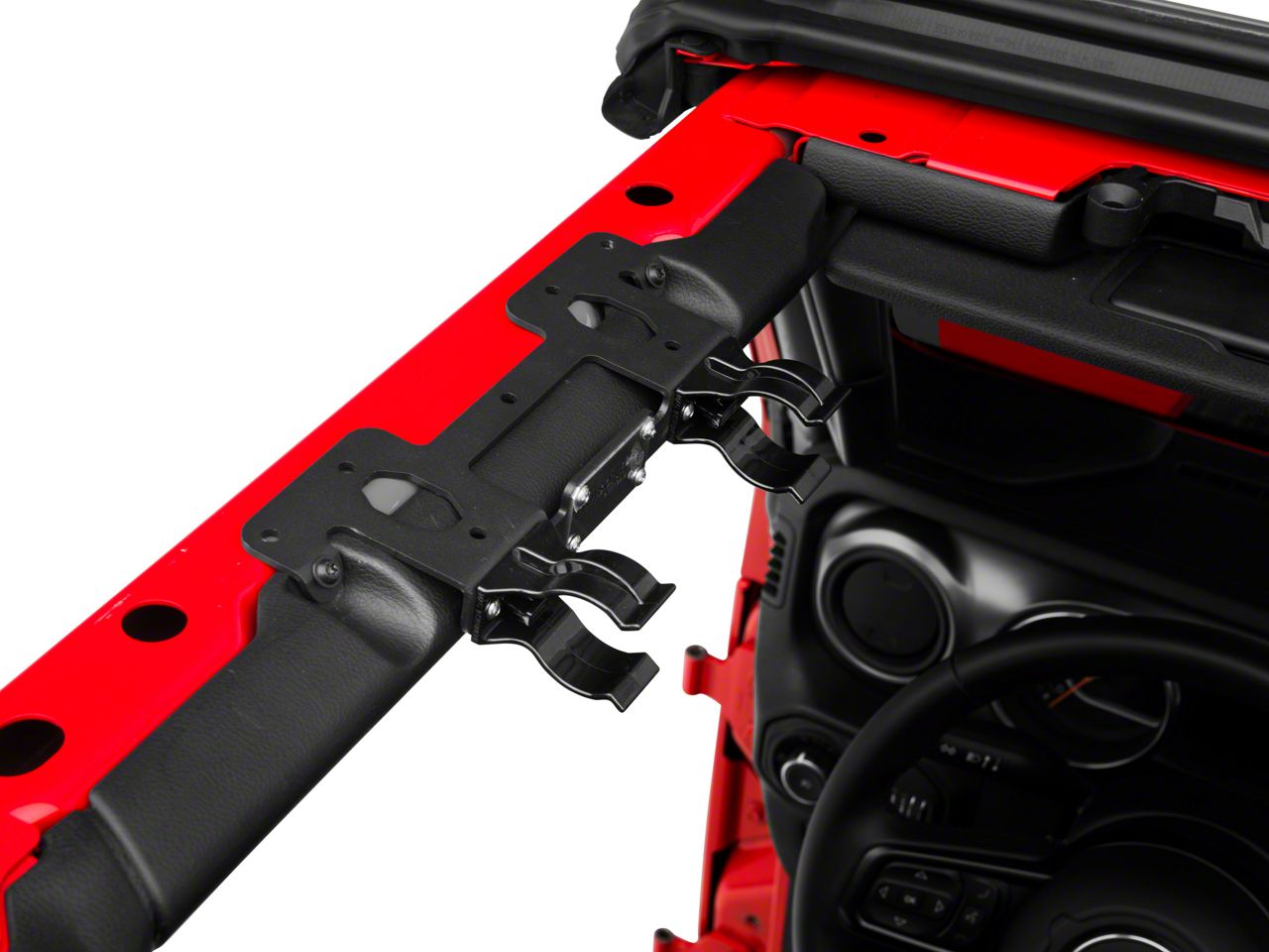 Mounts Flashlight on Front Roll Bar. Instead of having your D-Cell flashlight moving or rolling noisily in the cabin of your Jeep Wrangler JL 4-door model, keep it stationary using the Fishbone Offroad Front Roll Bar Flashlight Mount. Designed for installment on the front roll bar, this mount will enable you to keep your flashlight in one place.