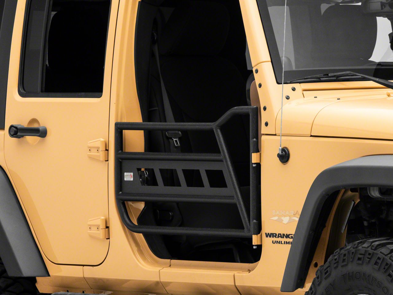 Application. These Fishbone Offroad Textured Black Front Tube Doors are made to fit 2007-2018 Jeep Wrangler JK models.
