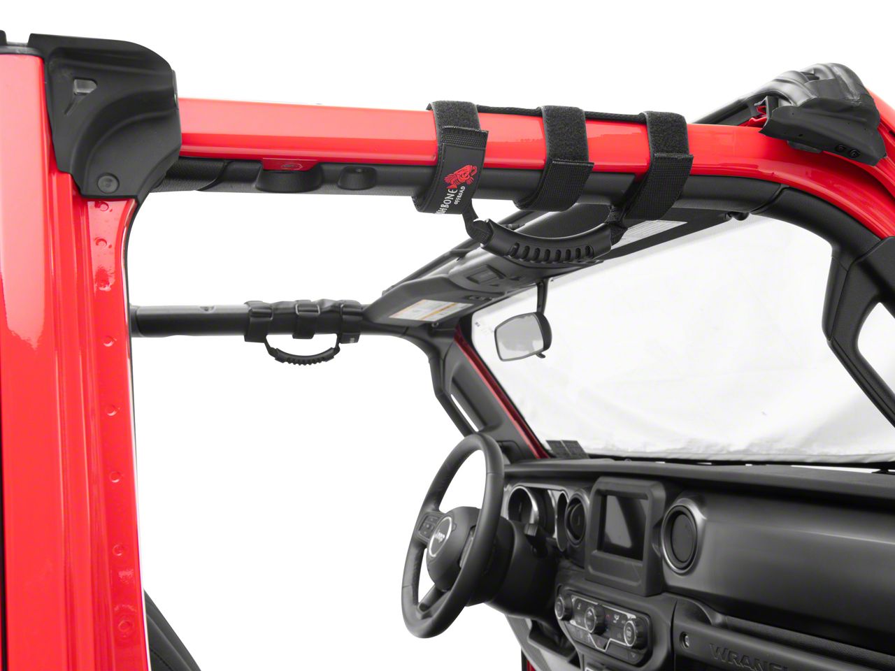 Conveniently Access Your Wrangler. Conveniently access your Wrangler when you outfit it with these Fishbone Offroad Grab Handles with Three Straps. These grab handles are designed to mount onto your roll bars, turning them into stable grabbing points, making accessing your vehicle much more convenient and safe. These handles are especially helpful if you’ve lifted your Jeep's suspension, and they can be used to keep your passengers stable when negotiating nail-biting trails. What’s more, these handles can double as hanging points for carrying extra clothes, backpacks, and other similar items.