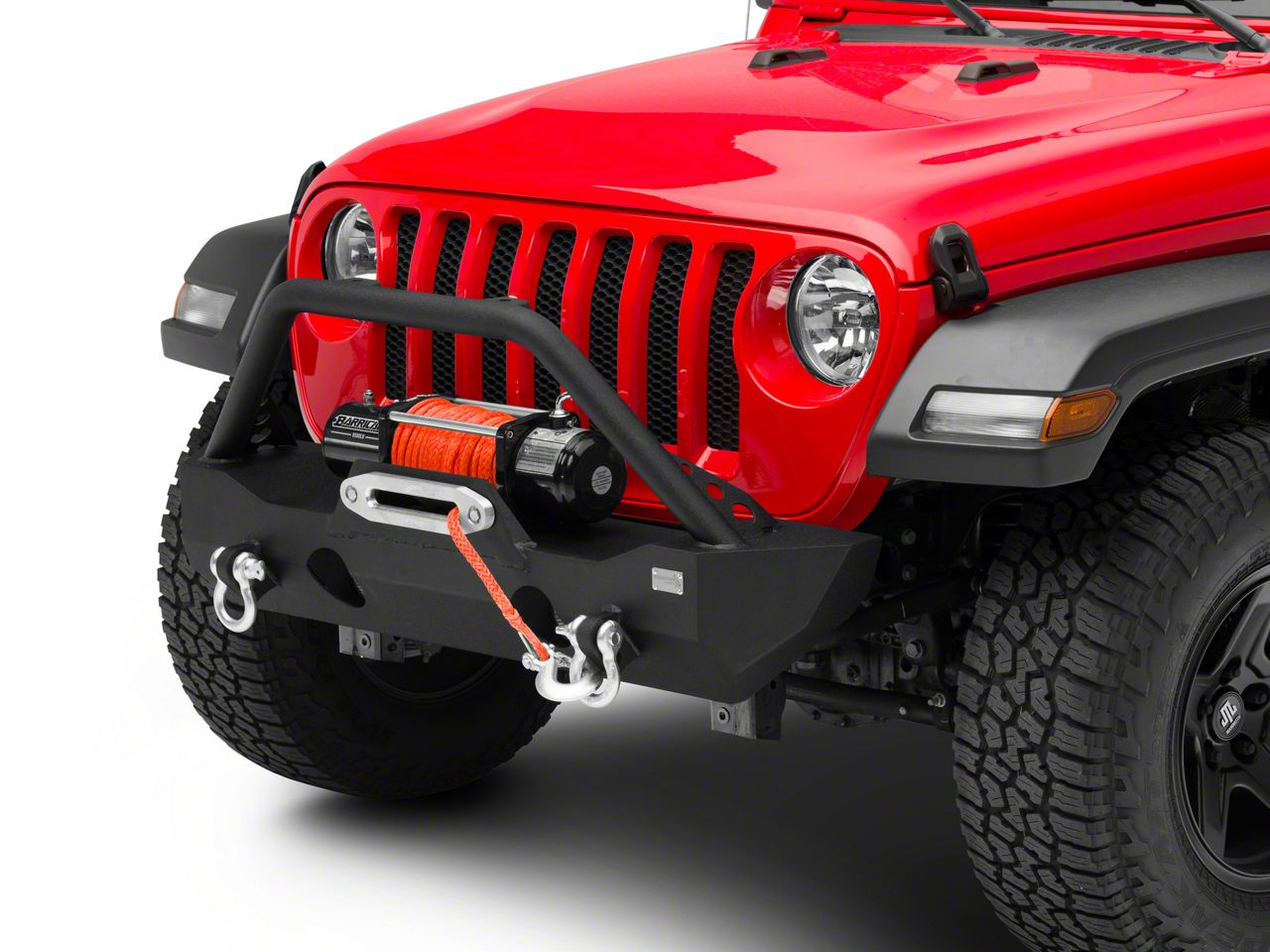 Winch Features. This stubby bumper comes complete for your favorite winching setup. with a 2-inch steel tubing winch guard to protect both your Jeep and your winch, as well as an integrated winch mount for your Jeep, there's no worries about what kind of winch you want to install. Just figure out what you're going to do with the 2 included D-rings.