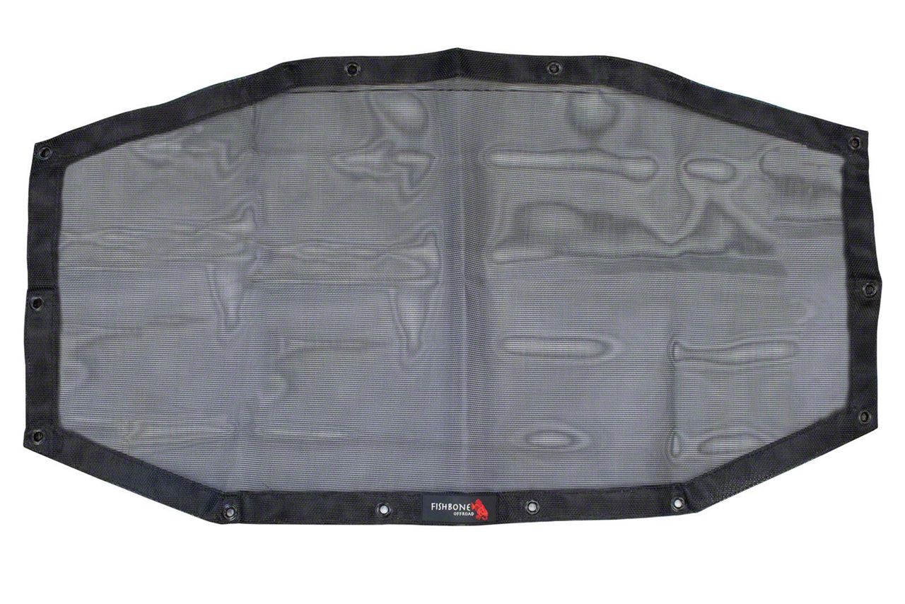 Design. The Fishbone Offroad Rear Mesh Sun Shade stands out for its capacity to shield individuals from the damaging effects of the sun's rays. Adequate air circulation is facilitated by it while also effectively shielding a considerable portion of sunlight, resulting in a cozy and shaded ambiance within the confines of your Jeep.