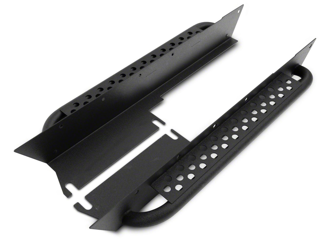 Textured Black Finish. These rock sliders have been given a textured black powder coating. This protects the steel from rust via scratches and abrasions. It also looks and feels rough, just like your Jeep.